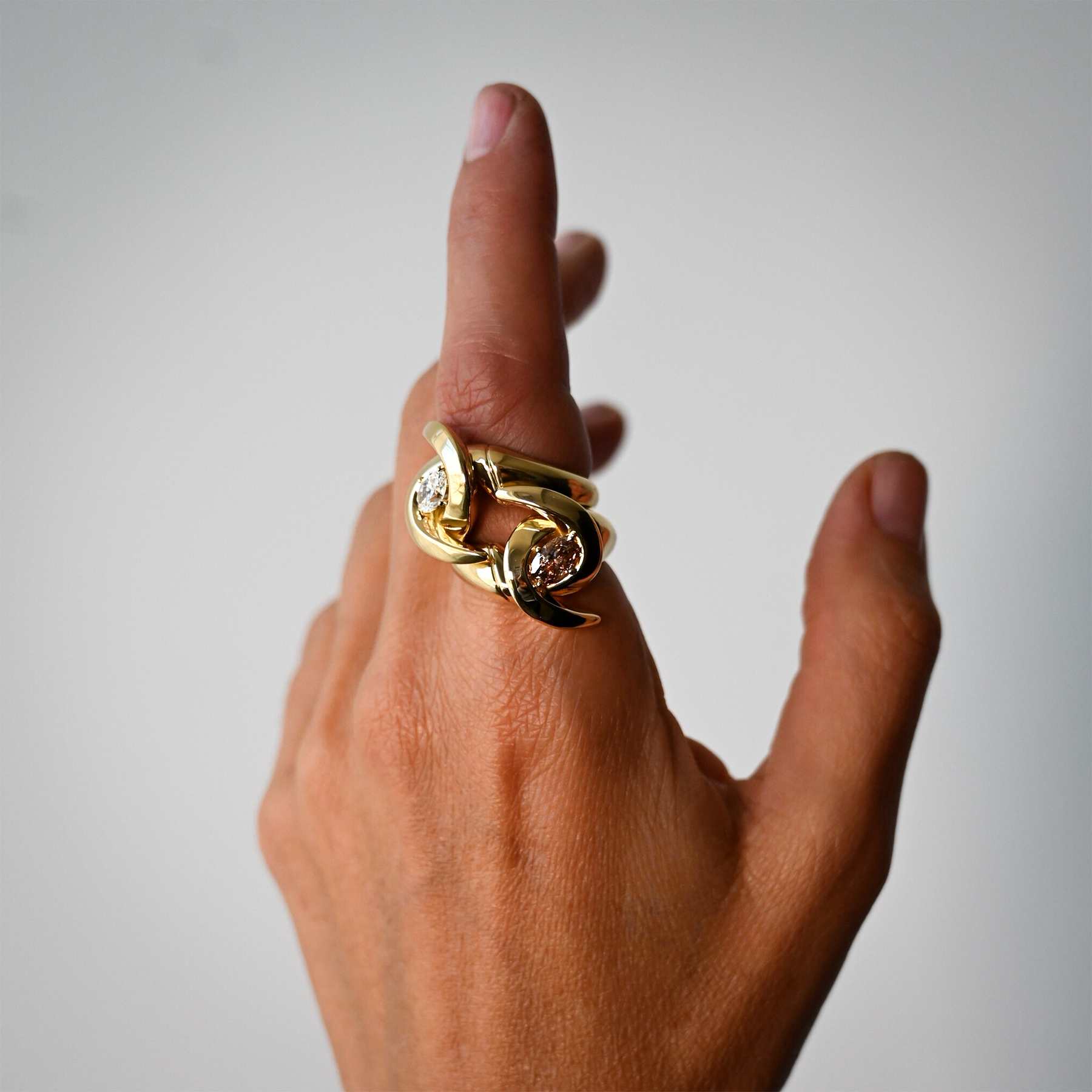 Forged from the meeting of two forces, the Unbreakable Bond Ring embodies surrender through trust. Its form, two sculptural curves locked in eternal orbit, echoes the dance of eagles midair: fierce, fluid, unyielding.